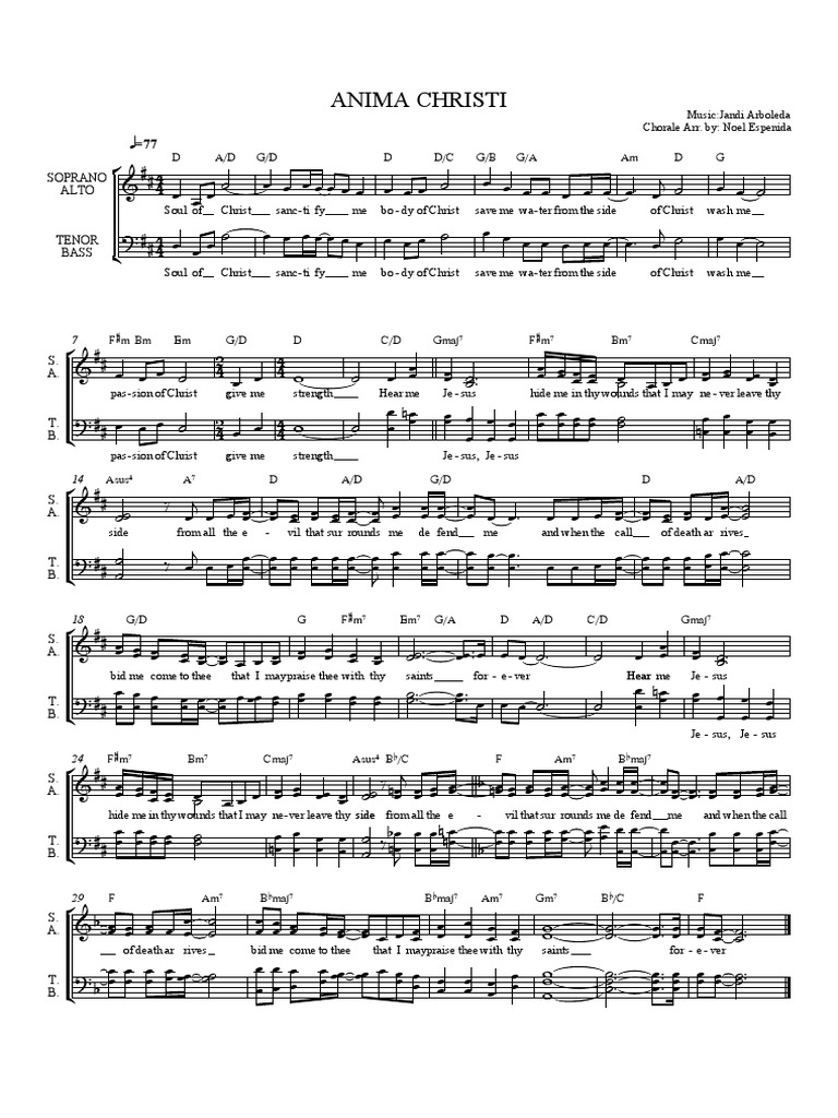Anima Christi For Mixed Voices Satb By Agatep Pdf Entertainment General